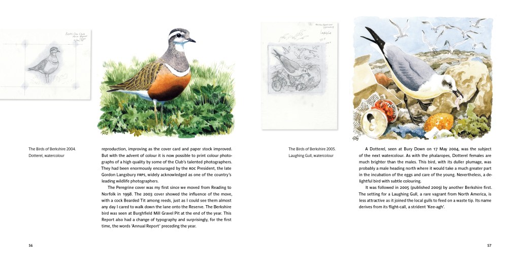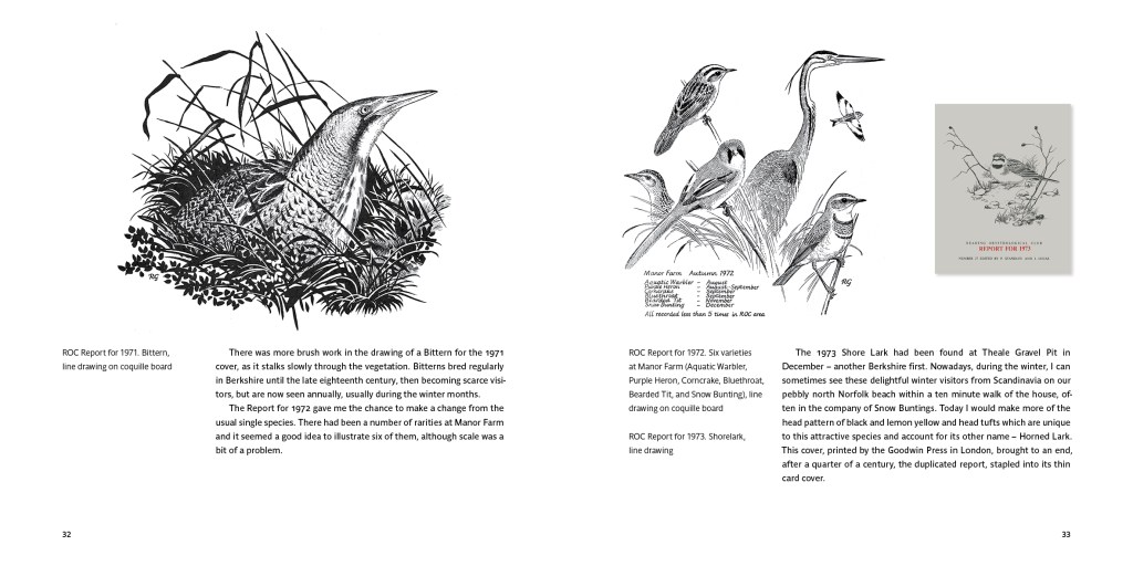 Gillmor was already a keen bird-watcher at the age of 11 when the Reading Ornithological Club (launched in 1947) invited him to join them as a visitor; at 13 he was elected as their first junior member. He was also learning the art of lino-cutting at Leighton Park School, and the Club’s 1949 annual report bore his linocut of a Canada Goose on its first printed cover. Over sixty years on he is still producing his wonderful representations of birds for the covers, particularly the more interesting sightings of each year. This book is the story of his formative bird-watching and print-making years. Illustrated with the images from the covers themselves, it is a beguiling account of the development of both artist and bird-lover.